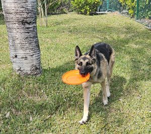 ROSIE2 entered our system as a relinquishment from a family to one of our fosters. She came here and was tested and we found her to be a great gal. She is engaged and loves ball and Frisbie. She is relentless with play, and needs a family who has the time for a dog like that. She does know how to slow down, but she needs her energy run off before that can happen. She is housebroken, spayed and crate trained and is utd on shots. She is not at all destructive.  We do not have a hw status at this entry. She knows basic commands and learns extremely quickly. She is one of the smartest dogs I have ever had here. She would  a good candidate for most any outside job such as search and skateboarding as she is quick to pick up on instructions and wants more than anything to please you.  She is 76 pounds and very pretty.